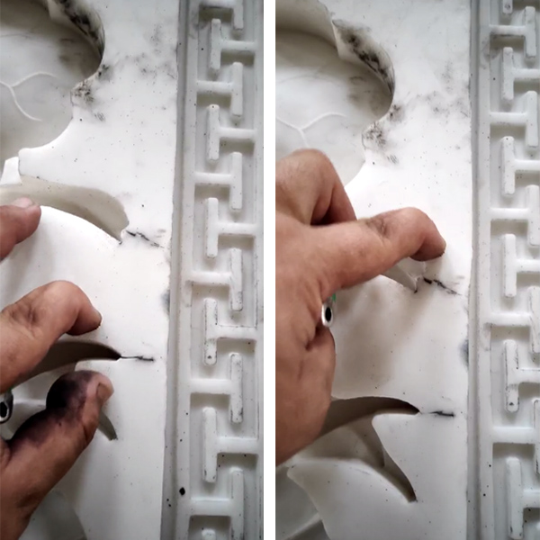 前几天有个客户发过来一段视频是硅橡胶模具出现裂痕,而且情况十分严重(如下视频截图)。从图片中看出该硅橡胶模具使用时间并不长,但是在模具边角位出现一道道裂痕,大大影响生产。客户告诉我们该硅橡胶模具是从别家供应商购买液体模具硅胶自行制作,投产使用不到一个月,日常使用3-5次左右,估算翻模次数在160次左右就出现这种情况。那么是什么原因导致硅橡胶模具出现裂痕?